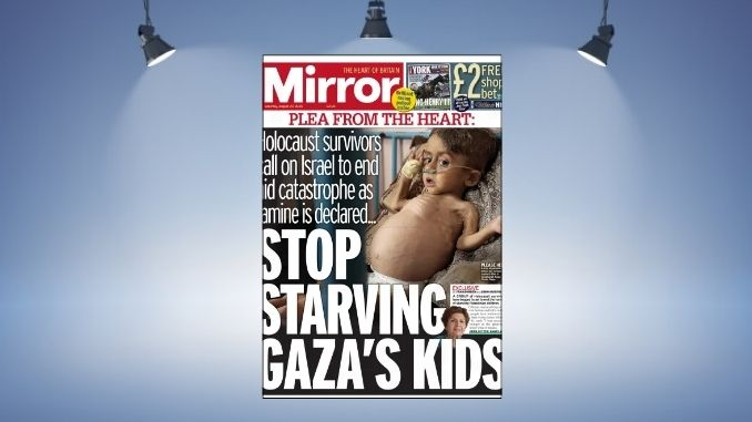 El Daily Mirror publicó el 23 de agosto de 2025 la foto de un niño palestino de tres años.
